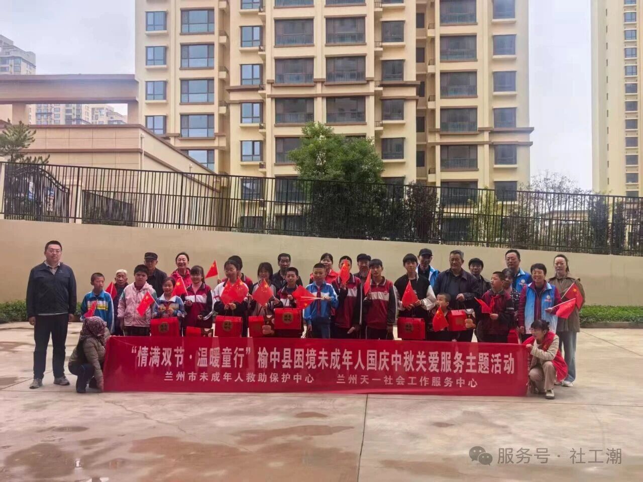 在国庆与中秋双节来临之际,为缓解榆中县受灾困境未成年人的心理压力,传递社会温暖,9月28日,在兰州市未成年人救助保护中心的指导下,兰州天一社会工作服务中心在榆中县城关镇幸福家园小区成功开展“情满双节·温暖童行”关爱活动。活动面向20余户受8月洪灾影响的困境儿童家庭,通过文化体验、心理疏导和互动分享等方式,帮助孩子们在节日氛围中重建安全感,感受传统佳节的温暖与关怀。
